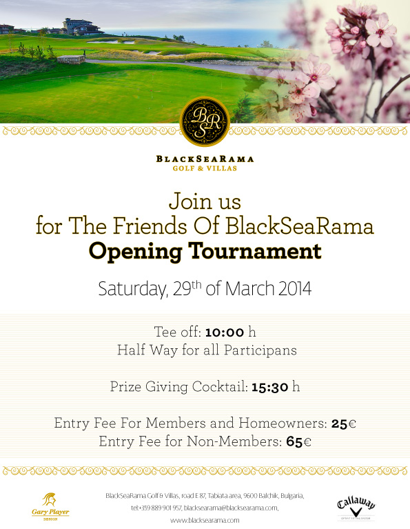 The tournament will take place at the BlackSeaRama Golf Course on the 29 th of March, Saturday from 10:00 h.