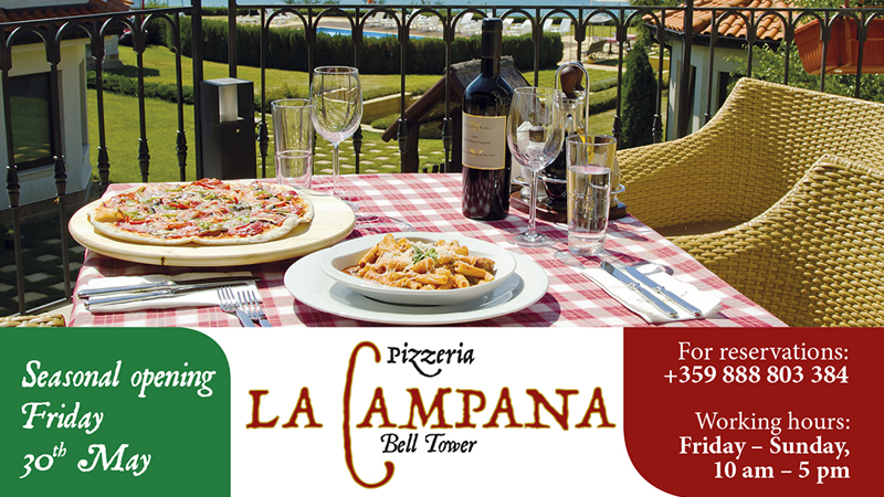 Enjoy the friendly surroundings and the fine taste of home-made pizza & pasta at La Campana. Located in the heart of Bell Tower complex, this italian restaurant with an inviting sea view terrace, is perfect for your family lunch.All meals are carefully prepared with organic seasonal vegetables from our Eco Garden.