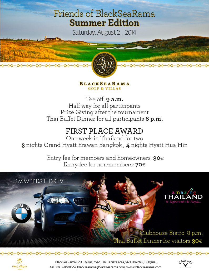 BlackSeaRama Golf & Villas invites golfers to the Friends of BlackSeaRama Summer Edition tournament on August, 2nd. Join us for a thrilling 18 hole round and experience the very best of Gary Players style.